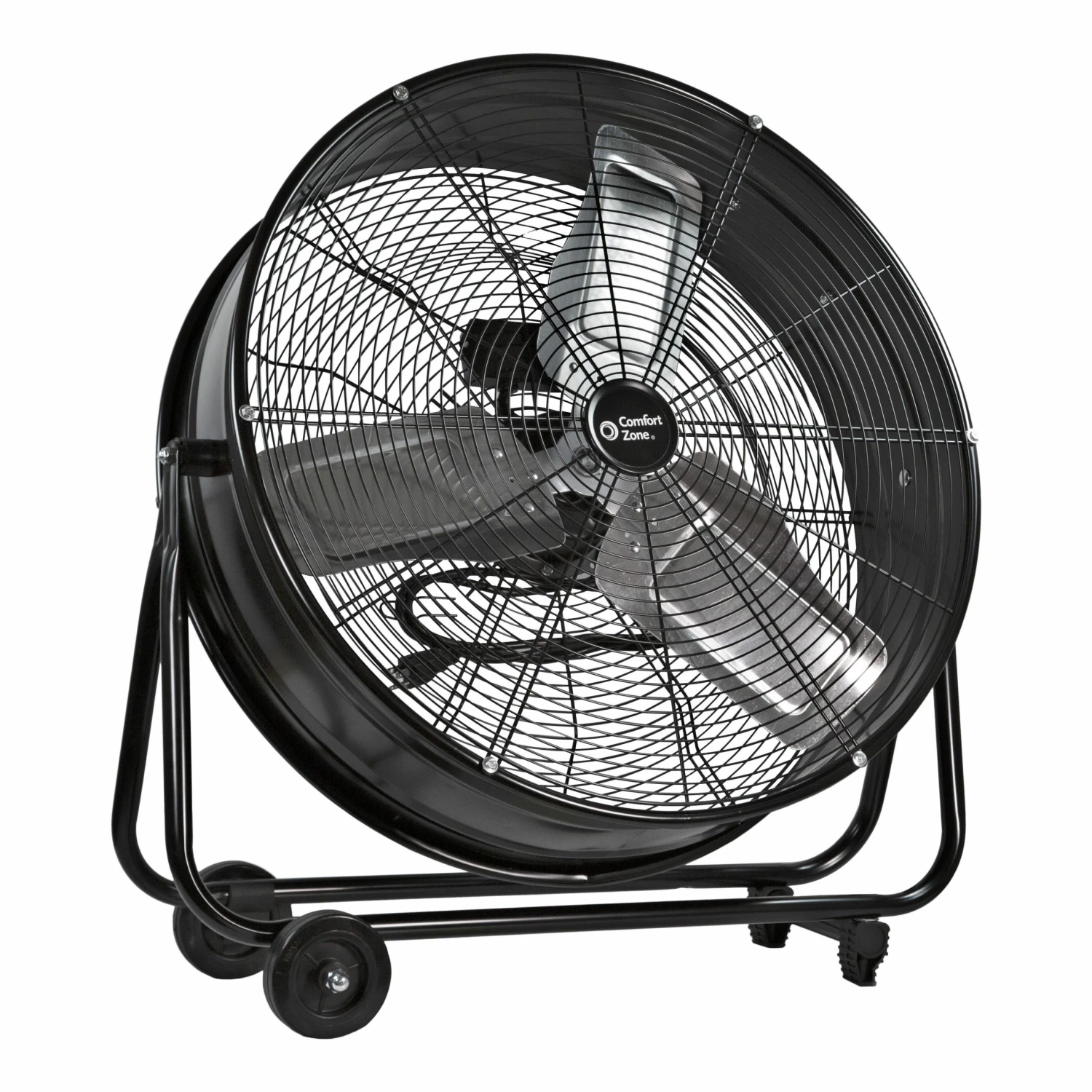 This Comfort Zone 24″ high-velocity drum fan is made with a powerful motor and two-speed switch, which allows you to adjust air output for maximum comfort. With two fan speeds, you can optimize air circulation in your workshop or garage or opt for a strong breeze in the hottest areas of your workspace. Featuring a 180-degree cradle mount tilt, this high-velocity metal fan can be adjusted to direct airflow exactly where you need it. Simply tilt the fan up or down to direct the flow of air towards the location you want it.