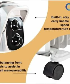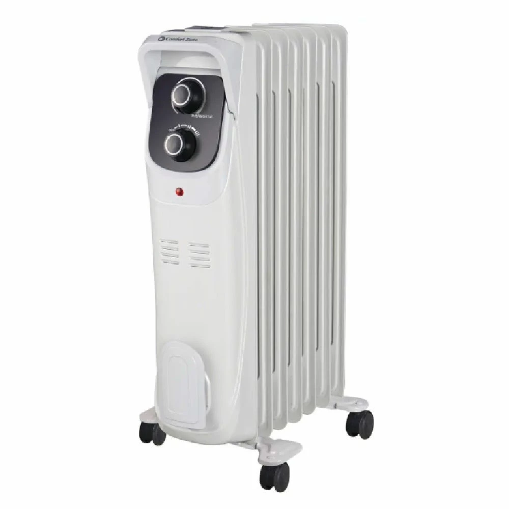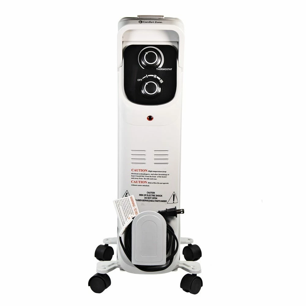 The Comfort Zone oil filled radiator heater is an efficient and powerful way to heat medium sized rooms in your home. It features 5 warming fins as well as an adjustable thermostat that maintains a constant temperature. The stay-cool body has a molded handle that lets you safely and comfortably transport this heater from room to room as needed.