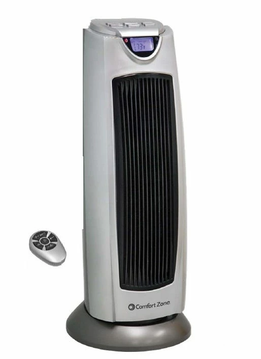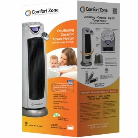 This Comfort Zone Tower Heater with remote is an efficient and powerful way to heat medium-sized rooms in your home. Offering a choice of two heat settings, this 15-Watt tower heater is as practical as it is powerful. The stay-cool body has a molded handle that lets you safely and comfortably transport this tower heater from room to room as needed. Clearly labelled buttons make it easy to adjust the temperature, set the timer, select the mode, engage the oscillation, and power your tower heater on and off.
