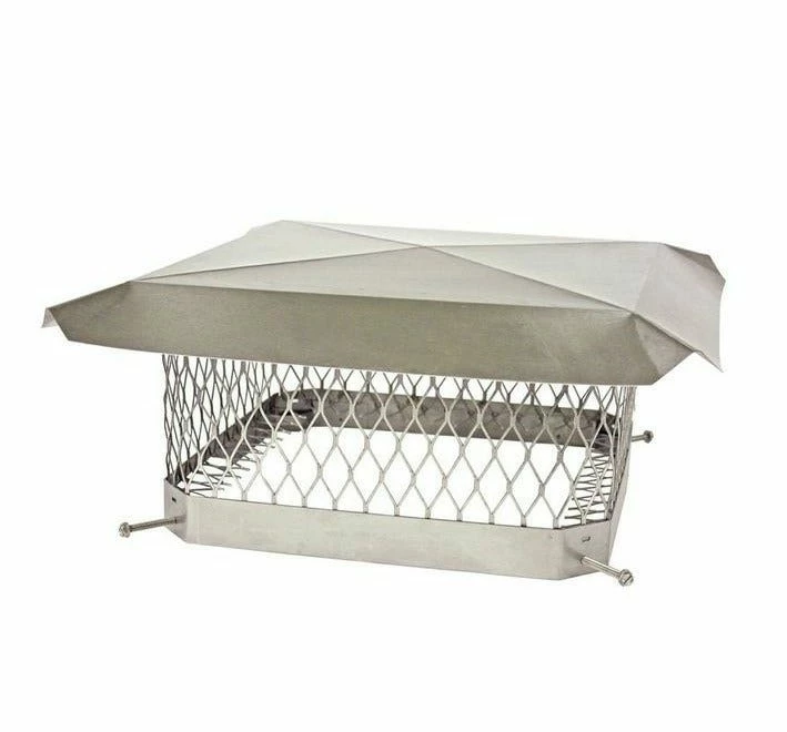 The Stainless Steel Shelter Chimney Cover is the durable and economic choice for chimneys anywhere oil or coal are burned or where wood is the primary source of heat. Stainless is also necessary for applications within 25 miles of a saltwater coast. The outside mounting design provides maximum free air space and better draft while the attractive powder coat finish, helps it stand up to the weather elements. Made with a 24 gauge stainless steel hood with scalloped corners and roll-formed edges, 18 gauge expanded stainless steel mesh and 16 gauge stainless steel base and slotted hex head bolts.