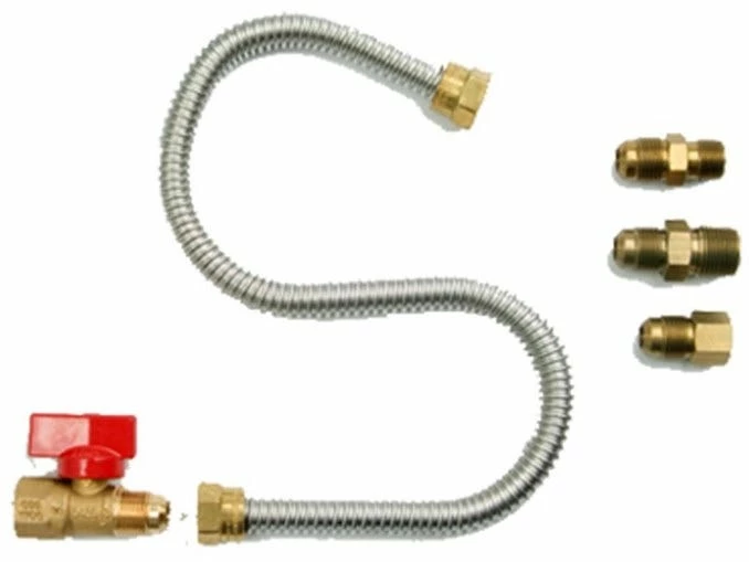 One Stop Universal Gas Appliance Hook Up Kit has everything needed for installation and can be used with gas logs, unvented wall mount heaters, gas stoves, and garage heaters.