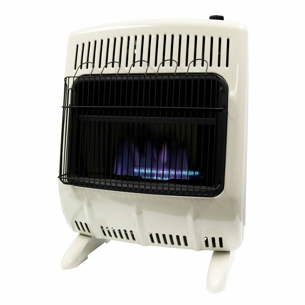 This Blue Flame 20,000 BTU Natural Gas Vent Free heater is the perfect supplemental heating solution even on the coldest days. This heater is conveniently equipped with a thermostat for superior control of the temperature in your space. Also, with a battery powered electronic ignition, starting it is a breeze – battery included. This unit can be permanently mounted to the wall or securely fastened to the floor with included mounting brackets and fasteners. A clean burning blue flame tube burner uses the natural convection of the burn to circulate warm comfortable air. With a factory standard Oxygen Depletion Sensor (ODS), rest assured this heater will provide you with years of comfortable and safe heat.