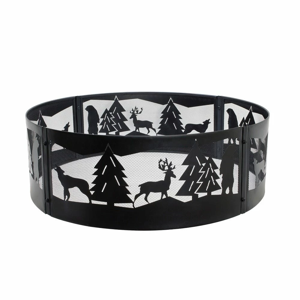 The one of a kind Pleasant Hearth Wilderness Fire Ring is a great accessory for any backyard bonfire. This fire ring will take you to the great outdoors and bring you back to nights by the campfire in the woods. This fire rings playful design features wolves, deer, bears and trees, which is sure to liven up your outdoor space.With its large 36″ diameter, there is plenty of room to stack wood for a roaring fire.Bring the great outdoors to your own backyard with the Wilderness Fire Ring.