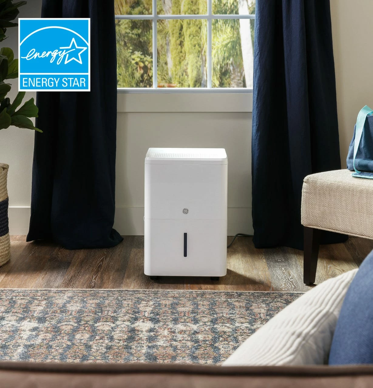 The ideal dehumidifier for bedroom, basements, garages and other spaces with high humidity, this Energy Star certified unit removes 22 pints of moisture from the air every day.Β A 10-second alarm sounds when the dehumidifier bucket is full or missing, letting you know it’s time to empty or install it.Β Easily roll this portable dehumidifier from one room to the next thanks to built-in pocket handles and casters.Β The Smart Dry feature automatically adjusts the dehumidifier fan speed based on the humidity levels in the room.