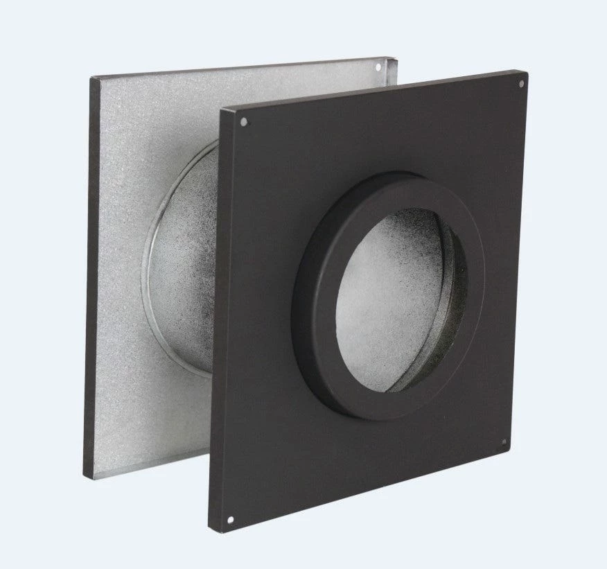 - Wall thimble is galvanized on one side and black on the other side to match the decor of the stove