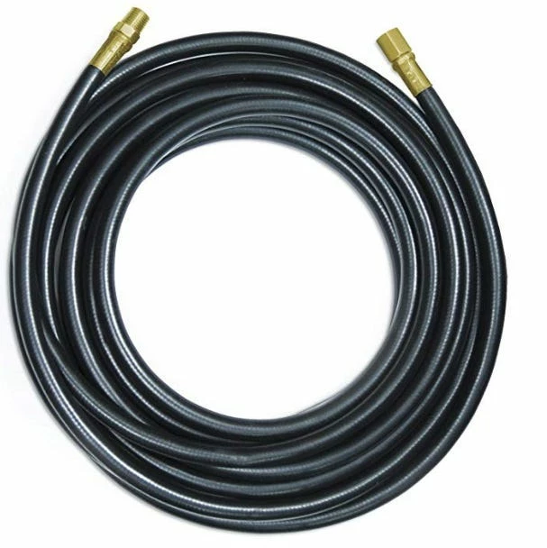 25 foot propane or natural gas extension/appliance hose is 350 PSI rated and is UL/CSA Listed. Industry standard 1/4″ Male NPT x 1/4-inch Female Ball Seat Pipe Swivel all brass fittings. Works great with a wide variety of products. Also used as an extension hose for portable propane appliances like grills, turkey fryers, and lots of other camping/RV equipment. Although the hose is rated for natural gas, due to the relatively small diameter of the hose and low pressure of natural gas, this used can only be used for relatively small appliances requiring less than 40,000 BTU.